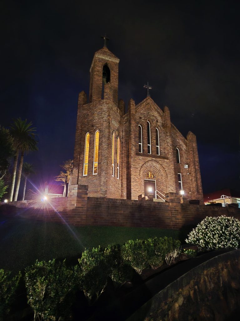 A church, solitary and steadfast in the night…