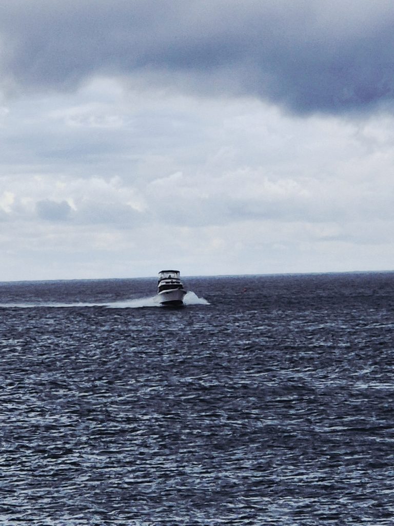 Rainy once more, a boat stood out against the overcast sky- food for writing, I’d say.