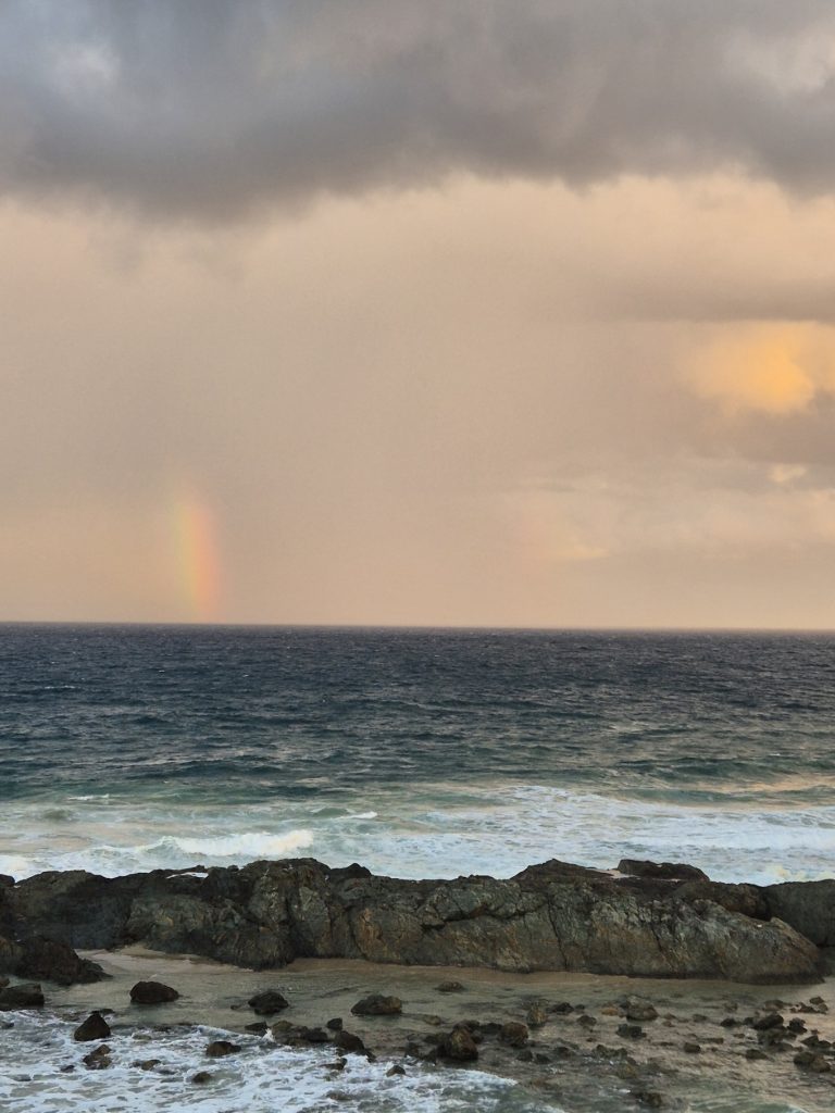 A rainbow rose, resplendent against the darkening sky…