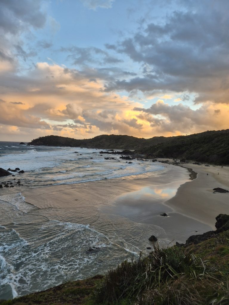 As the sun set, it splattered its radiant shades of yellow and orange across the expanse of the violent sea- it had been rainy that day, and the waves battered the rocks with breathtaking amounts of force, bringing with them torrents of wind that nearly knocked us over the railing and down the face of the cliff.